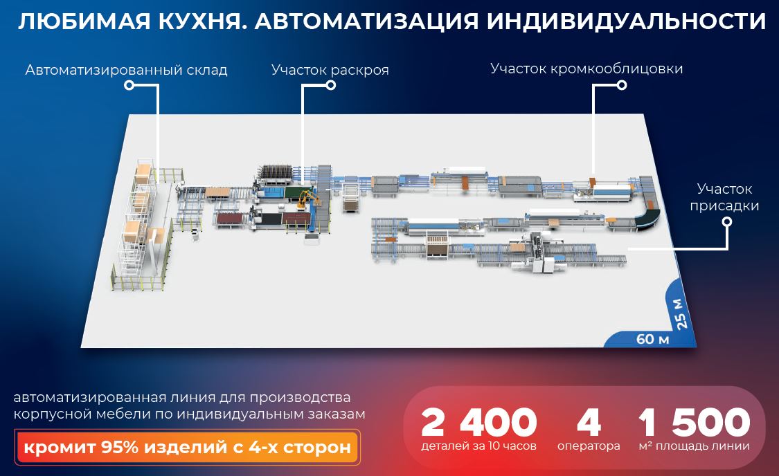 - Техтур на инновационную и передовую фабрику «Любимая кухня» с демонстрацией в работе полностью автоматизированной линии по производству мебели по индивидуальным заказам с кромлением изделий с 4-х сторон