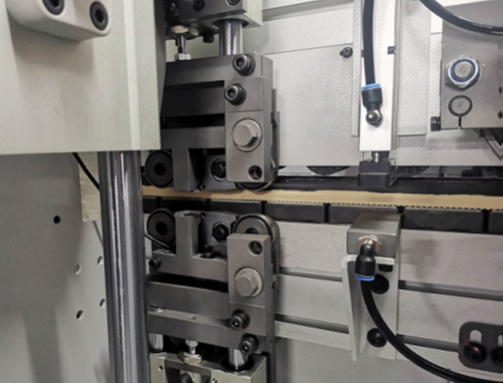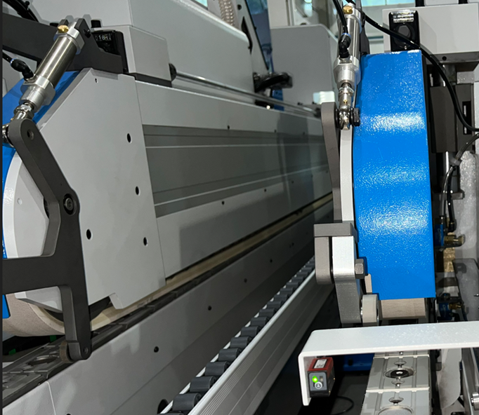 - Идеальная геометрия детали на выходе из станка благодаря комбинации усиленного бокового подвижного кронштейна с системой приводов подвижной стороны станка с точным контролем ее положения и форматной обработки детали с двух сторон за один проход;