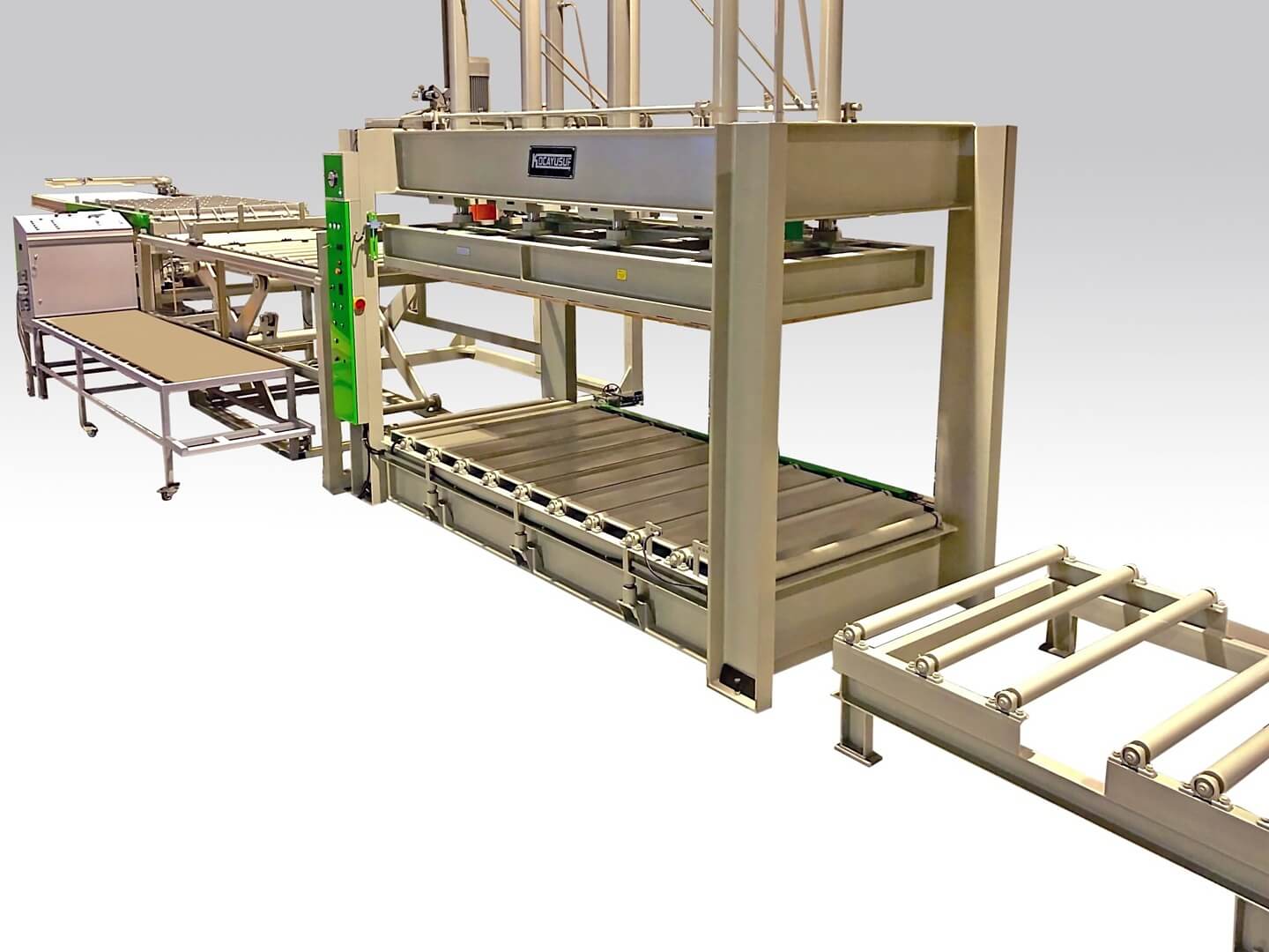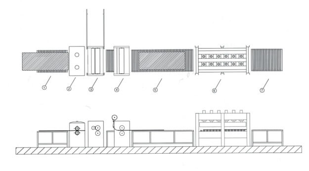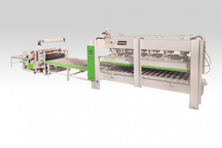 Линия облицовки (каширования) плитных материалов на основе плоского горячего пресса KP4/1