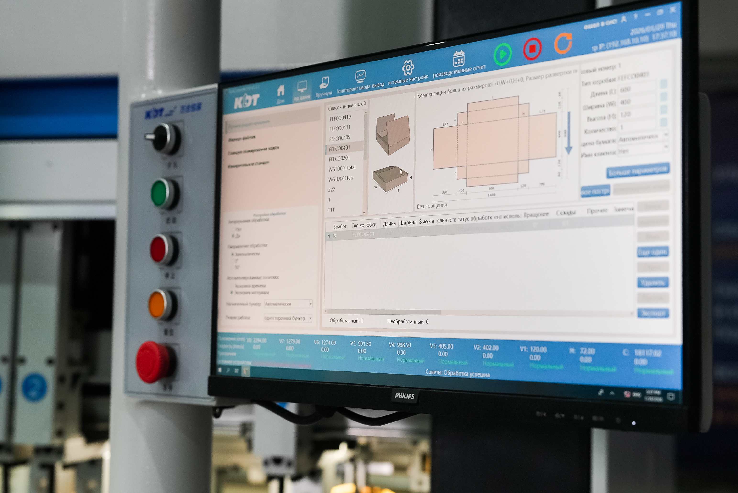 Настройка на новые размеры коробки за 1-2 сек